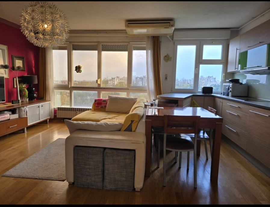 Prostran i svijetao stan smješten na 5. katu zgrade s liftom, idealan za obitelj ili kao investicija. Stan se sastoji od dvije udobne spavaće sobe i dnevnog boravka, iz kojeg se pruža prekrasan pogled na park i sunčanu južnu stranu – savršeno za uživanje u prirodnom svjetlu.