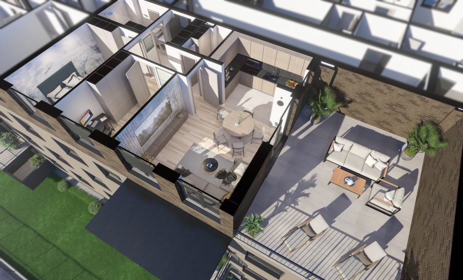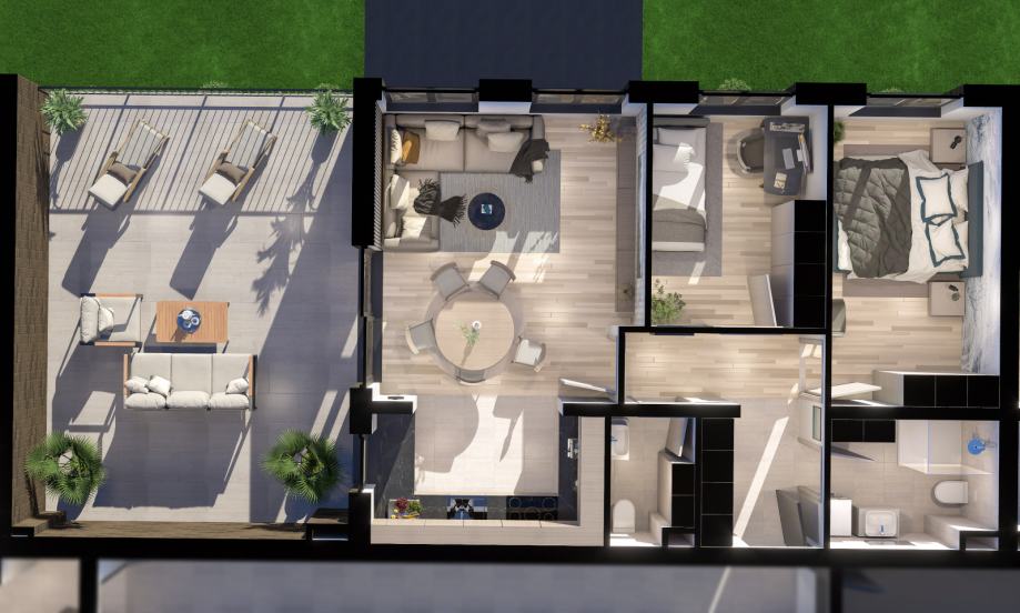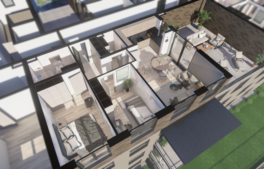 5. TIP: 64 m2 + 35 m2 (nenatkrivena terasa) - dvije spavaće sobe