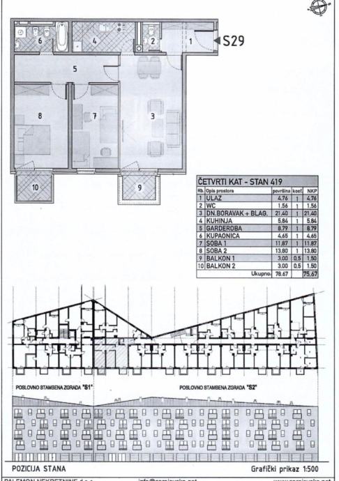 U prodaji je još i stan na prvom katu u istoj zgradi, identicnog tlocrta i iste kvadrature, po istoj cijeni .