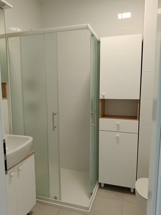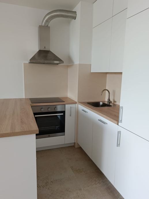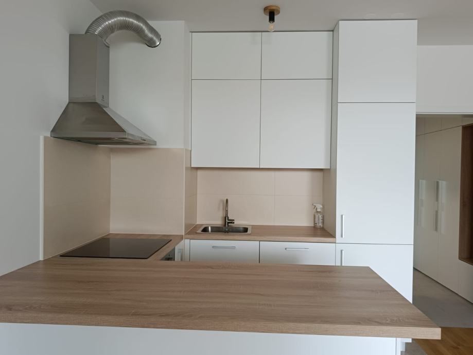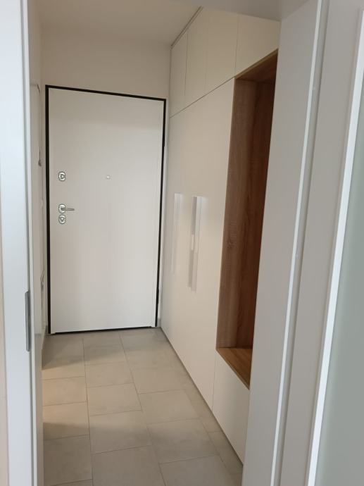 Stan je djelomično namješten, te je u cijenu stana uključen ugradbeni ormar u hodniku, ormarići u kupaonici i kompletno opremljena kuhinja, sve rađeno po mjeri. Kuhinja je opremljena uređajima marke Electrolux (indukcijska ploča, ugradbena pećnica, ugradbena perilca suđa, ugradbeni hladnjak i napa) .