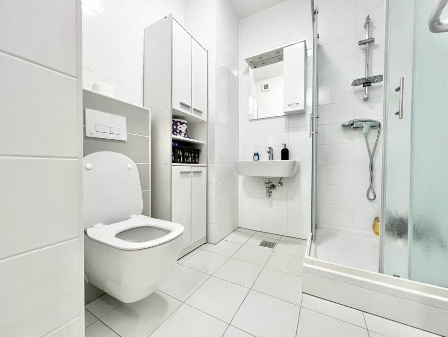 Prodaje se stan površine 41 m2 od čega 32,70 m2 čini ulazni prostor, kupaonica s wc-om i veliki open space kuhinja, blagovaona i dnevni boravak s izlazom na loggiu površine 8,29 m2.