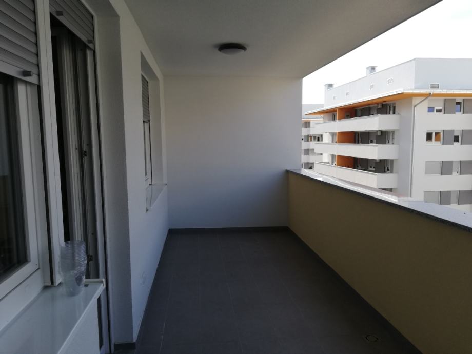 Iznajmljujemo (prvi najam) potpuno namješteni i opremljeni dvosoban stan površine 51 m2 smješten na 6. katu stambene zgrade koja broji ukupno 8 katova, te pripadajuće garažno parkirno mjesto (GPM) u istoj zgradi na etaži -2. Stan čine ulazni hodnik, dnevni boravak sa kuhinjom rađenom po mjeri i blagovaonicom, spavaća soba, kupaonica s WC-om, te velika lođa na koju se izlazi kroz dnevni boravak.