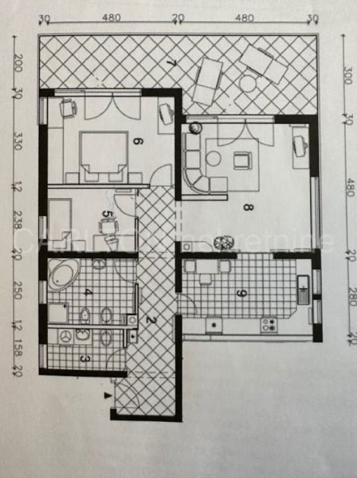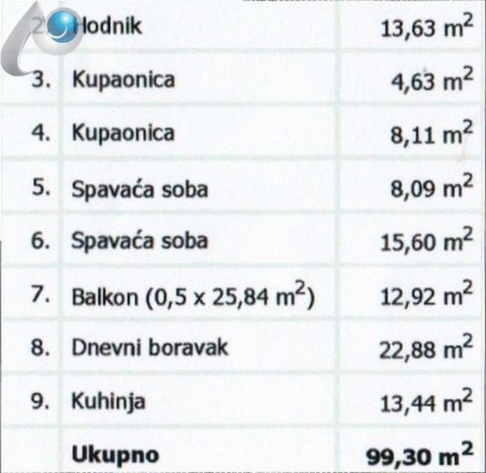 Sobe: 3 (prostrani dnevni boravak, dvije spavaće sobe)