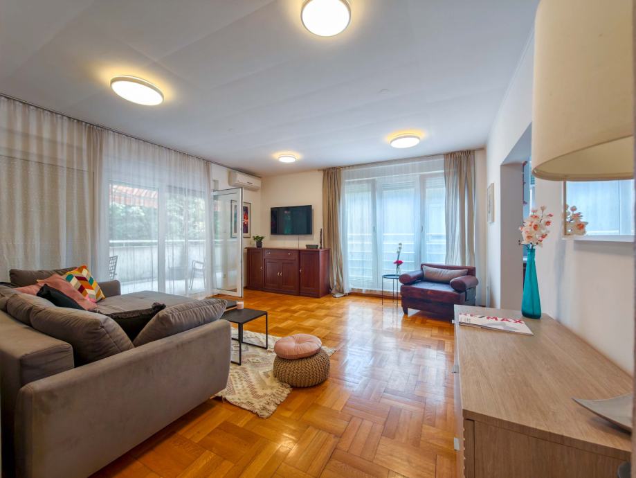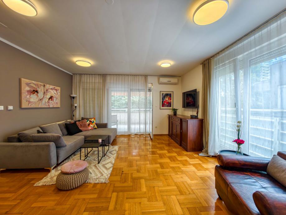 Ovaj elegantni trosobni stan u urbanoj vili nudi savršen spoj luksuza, udobnosti i prirode, s opcijom dugoročnog najma ili kupnje.