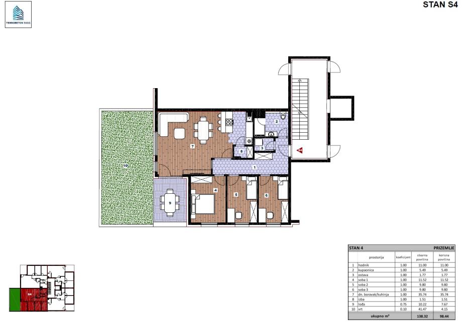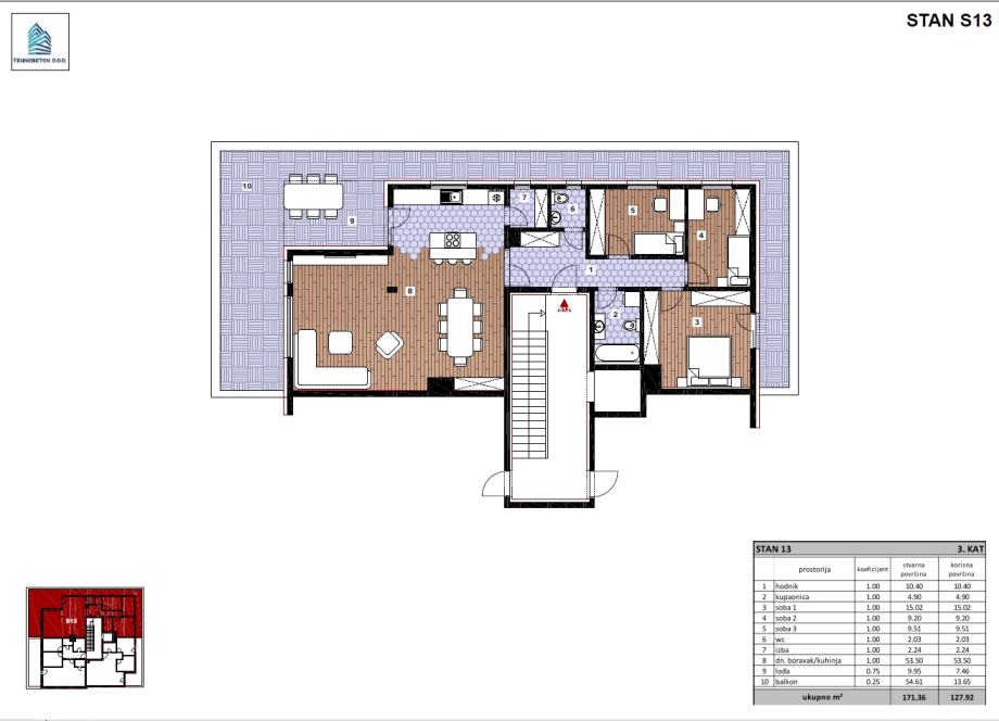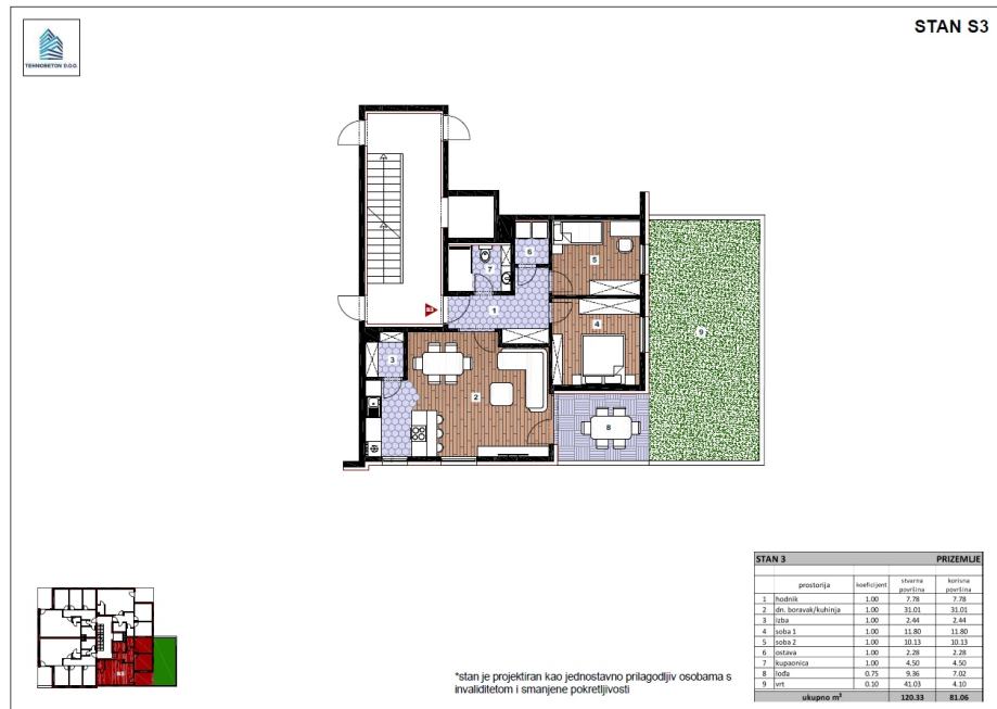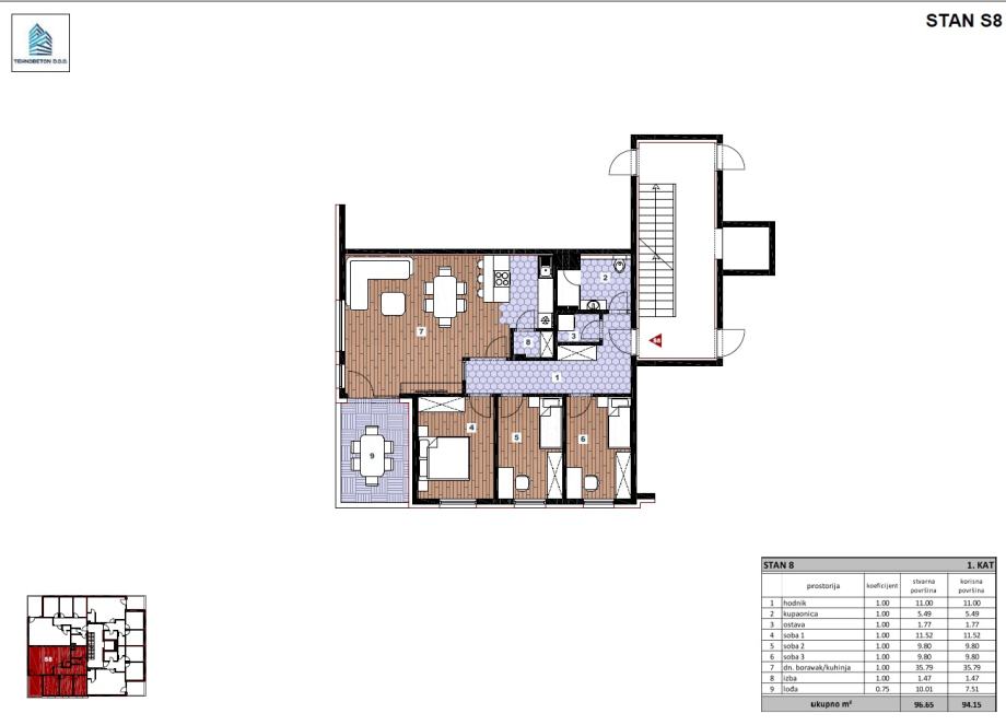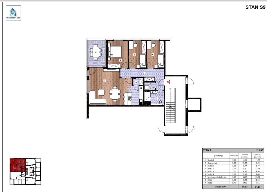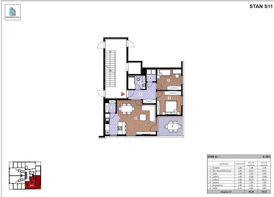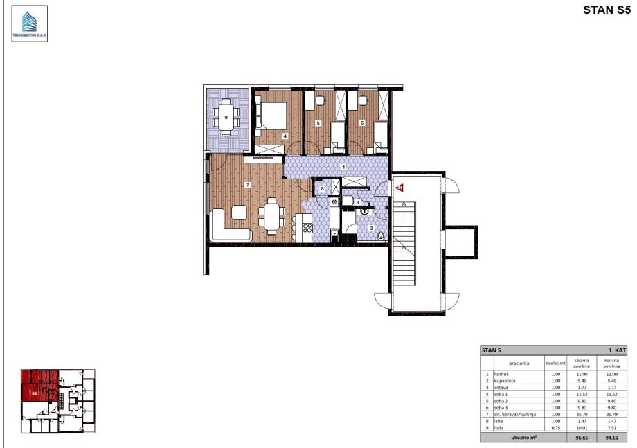 Prodaje se stan u sklopu novogradnje, Projekt Tehnobeton d.o.o. Sesvete, u višestambenoj zgradi sa 15 stambenih jedinica.