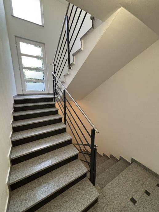 Stan se nalazi na mirnoj lokaciji (slijepa ulica), malo povišeno s pogledom na zapadni dio grada