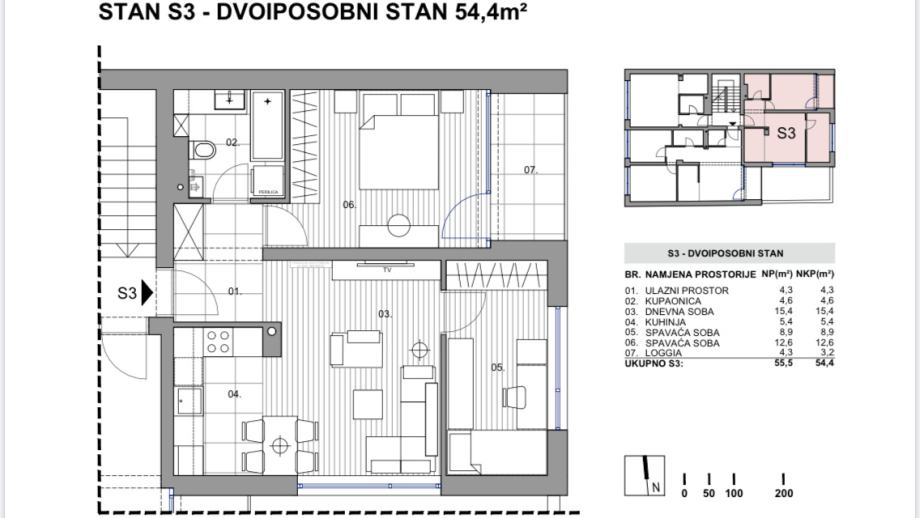 Stan: Zagreb (Gajnice),3-sobni, 55.00 m2, novogradnja (prodaja)