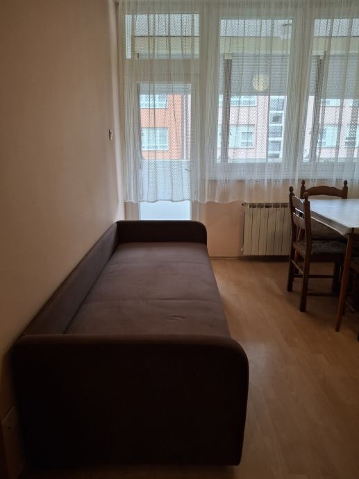 Garsonjera je potpuno namještena, opremljena kućanskim aparatima, odmah useljiva.