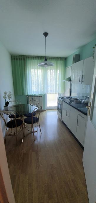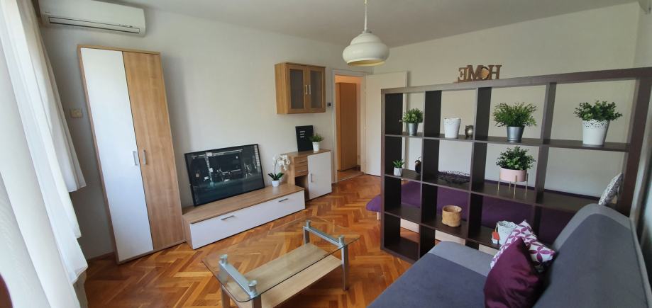Stan se iznajmljuje namješten i opremljen klima uređajem, perilicom rublja, kuhinjskim aparatima, protuprovalnim vratima.