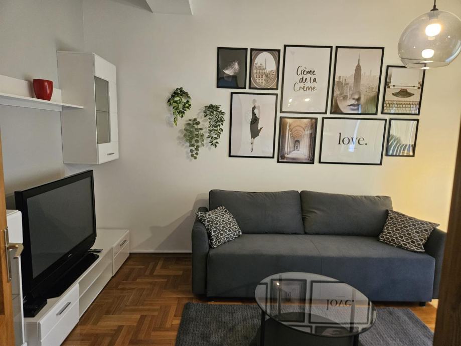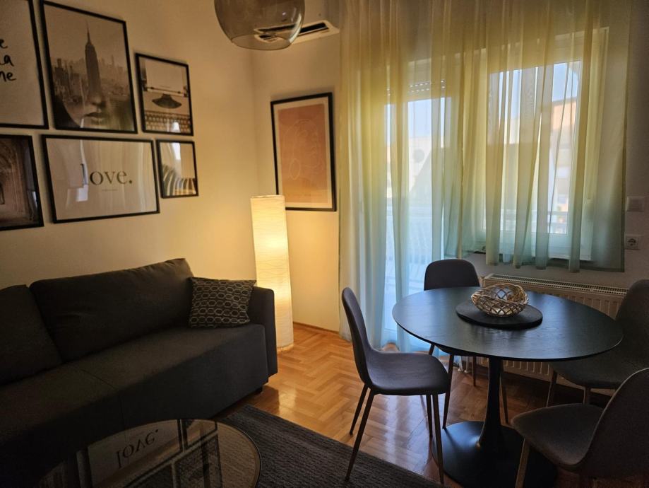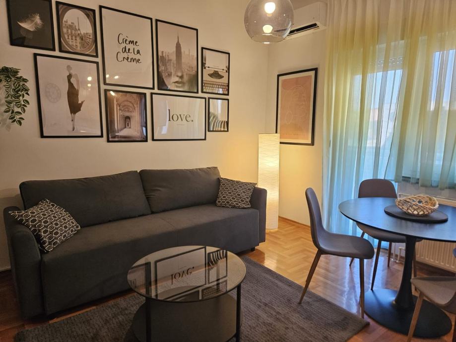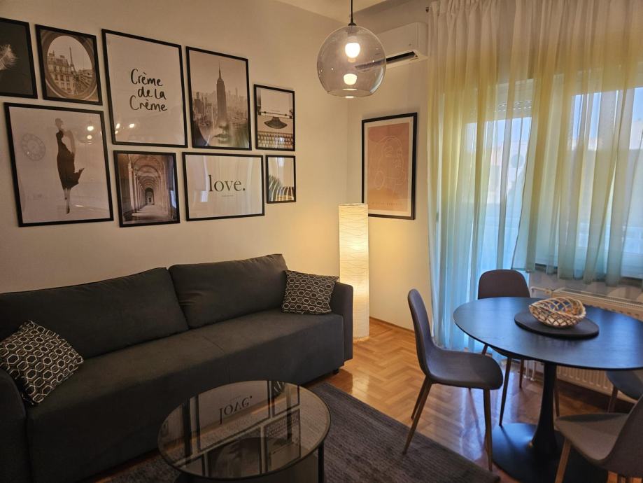 Iznajmljuje se potpuno renoviran i moderno namješten stan na visokom 1. katu kuće s 12 stanova na Samoborskoj cesti.