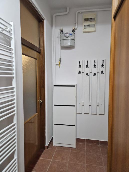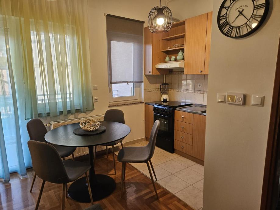 Novi namještaj (bračni krevet 160×200, ormar, trosjed na razvlačenje, stol + 4 stolice), nova rasvjeta, protuprovalna vrata.