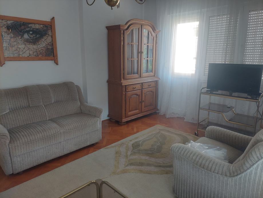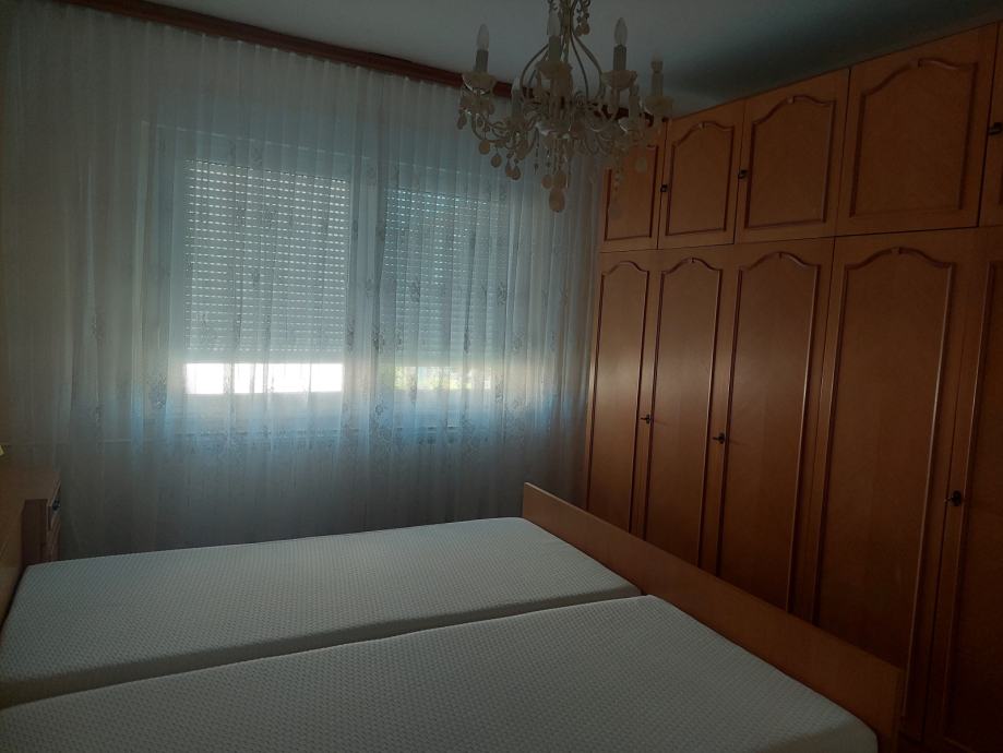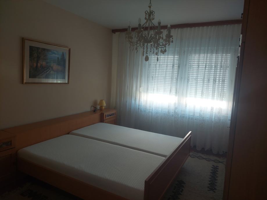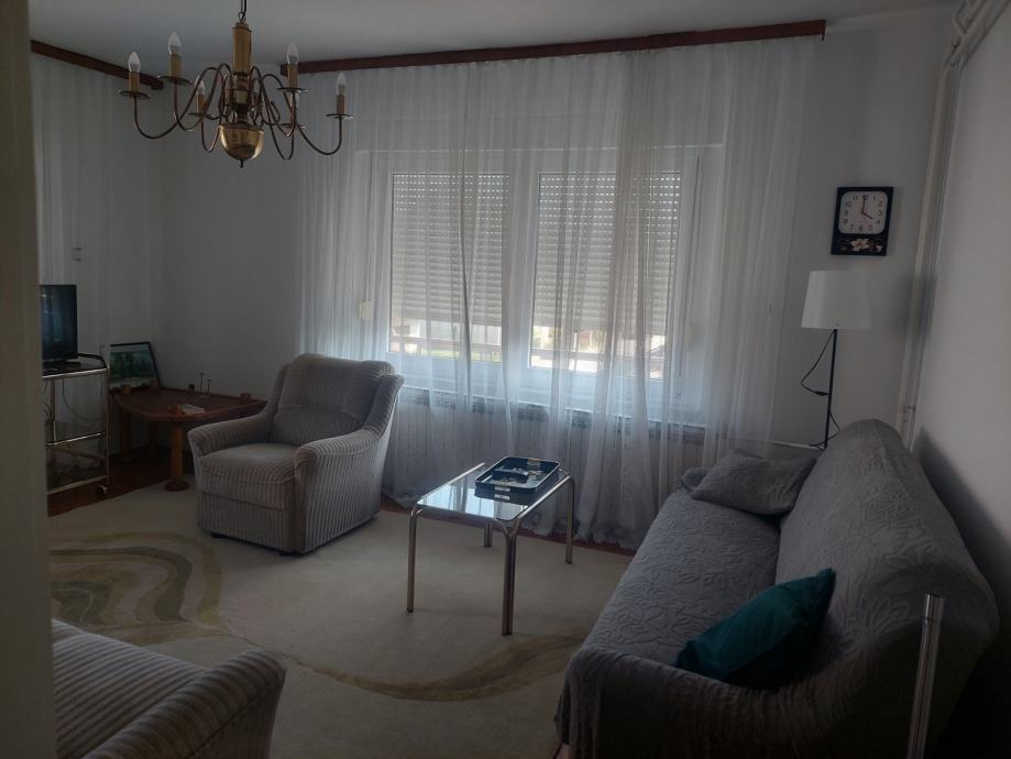 Komforan 2-sobni stan na 1.katu, svijetao, uredan, opremljen. Stan se sastoji od kuhinje u kojoj su svi novi aparati te koja ima izlaz na balkon, spavaće sobe (novi madraci), dnevnog boravka s balkonom, kupaonice, spremišta, podruma, te garaža unutar same kuće s automatskim podizajućim vratima na garaži. Nalazi se u mirnom dijelu naselja obiteljskih kuća, u blizini svih potrebnih sadržaja, škole, vrtića, sportskog igrališta, ambulante te važnih prometnica. Iznajmljuje se na godinu dana uz mogućnost daljnjeg produženja najma, sklapa se solemnizirani ugovor o najmu, uz polog 1-no mjesečne najamnine koji se koristi za završno čišćenje i farbanje stana, te se s ozbiljno zainteresiranim može pregovarati o visini najamnine. Pripadajuće režije (struja, voda, komunalno, plin)ovisno o sezoni ljeto-zima od 70-130 eura, sve prema dostavljenim uplatnicama.