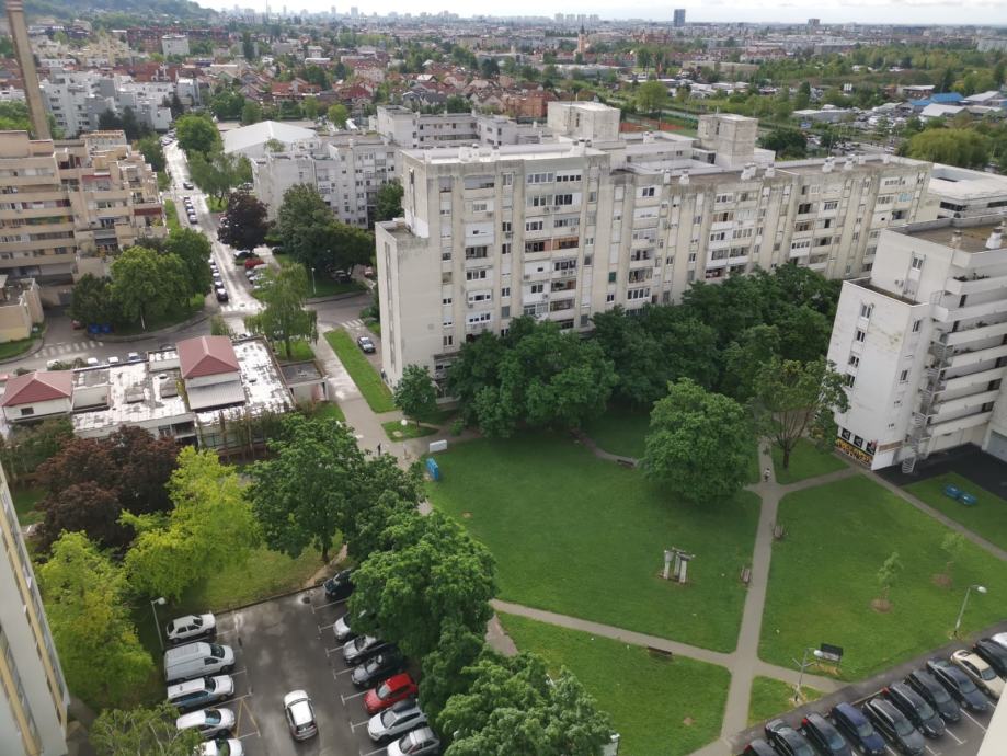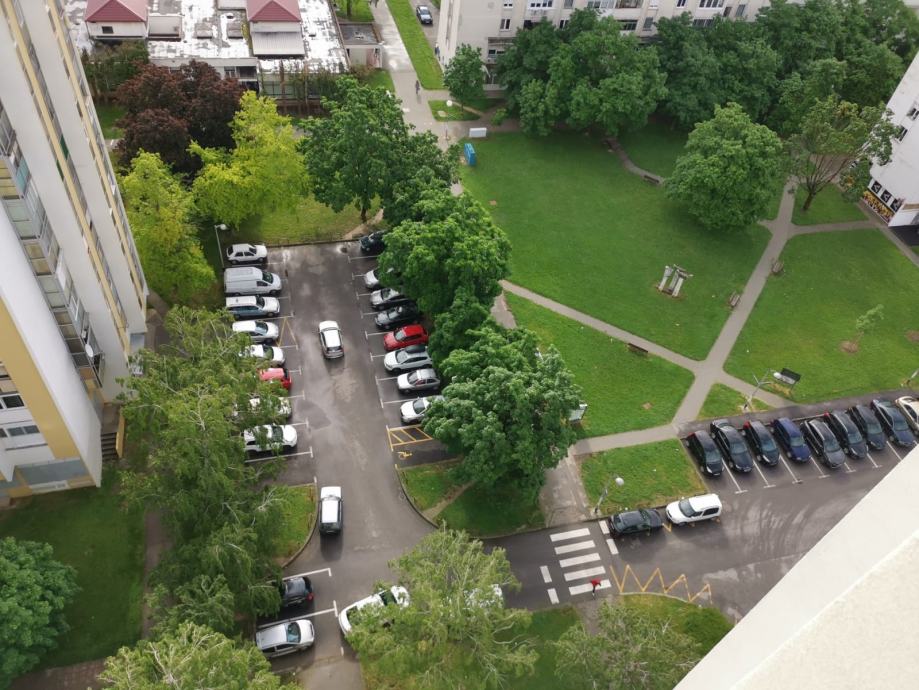 Ispred zgrade veliki park i veliki parking.