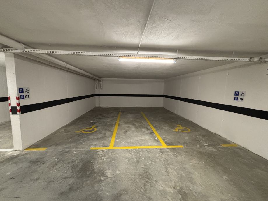U cijenu najma je uključeno garažno mjesto uvećanih dimenzija (6.5m dužine, 2.75m širine) koje se nalazi blizu ulaza u stubište i lift.