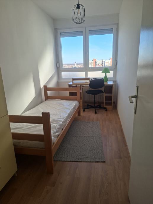 Iznajmljuje se dvosoban stan od 50m2 u Koledinečkoj ulici, Gornja Dubrava. Stan se nalazi na 8.katu zgrade u neposrednoj blizini autobusa, tramvaja i svih potrebnih sadržaja:banka, plac, parkić, pošta, škola, benzinska,Mcdonalds, Dom zdravlja, crkva te ostalih objekata koji su svi udaljeni maksimalno 5 minuta hoda. Stan je kompetno adaptiran i uređen; promjena parketa, laminata, nova nekorištena kuhinja, nova stolarija-prozori. Traži se jedna do dvije osobe; prednost studenticama ili stalno zaposlenim ženama. Izričito se traže pedantne osobe nepušači, sklone održavanju higijene i čistoće prostora kao i očuvanju stvari. Kućni ljubimci nisu dozvoljeni. Stan se iznajmljuje od 1.3. na duži period uz potpisivanje ugovora na minimalno godinu dana. Za više informaciji kontaktirati broj naveden u oglasu.