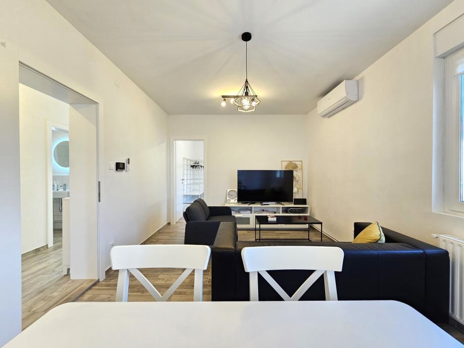 Stan je kompletno adaptiran (sve nove instalacije, vanjska PVC troslojna stolarija, komarnici, ALU rolete) te je korištena kvalitetna oprema (indukcijska ploča, ugradbena pećnica, perilica suđa, hladnjak te perilica rublja). Stan je klimatiziran a grijanje je centralno etažno plinsko. Kuća je osigurana, ima vanjski nadzor kamerama te optički FLAT internet i Smart TV uređaj.
