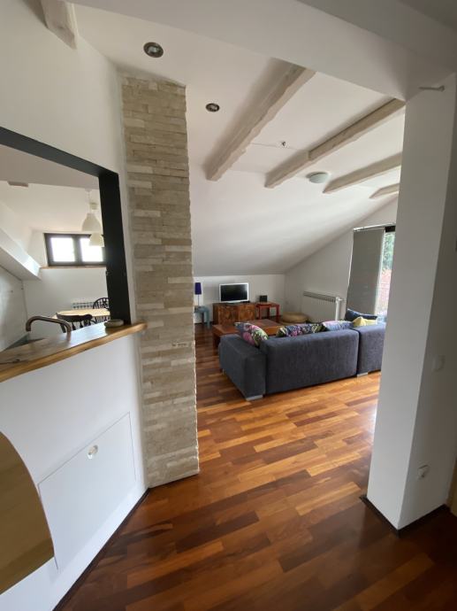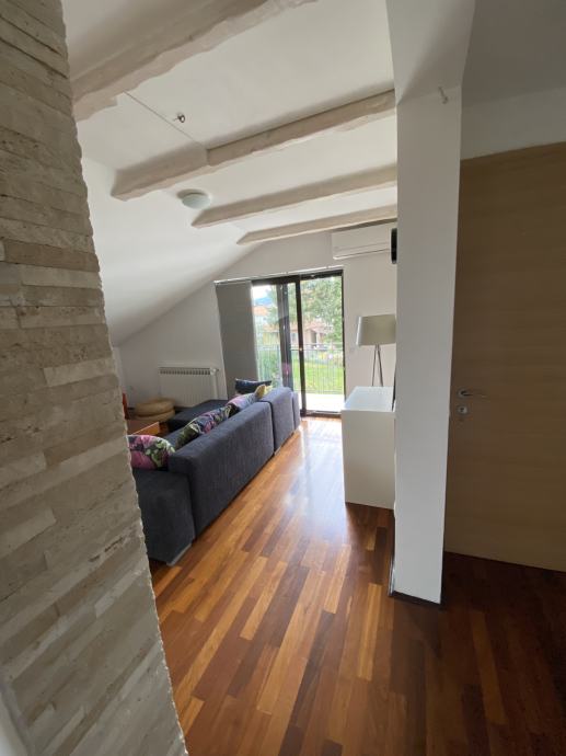 Nalazi se u mirnom predjelu blizu šume. Stan je potpuno namješten i opremljen, osim jedne sobe, koja može biti dječja ili ured.
