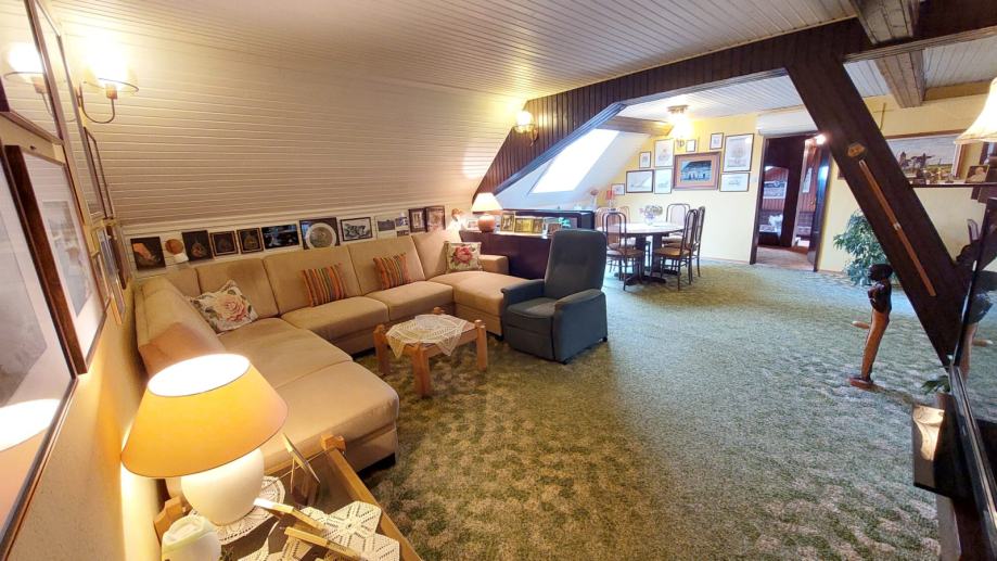 Stan se nalazi u centru Gornjeg Grada.Potkrovlje u mirnom okruženju sa pogledom na gornjogradske vrtove.Stan se sastoji od ulaznog prostora,kuhinje, smočnice, kupaone, dva velika dnevna boravka, tri spavaće sobe, radne galerije , garderobe i spremišta.