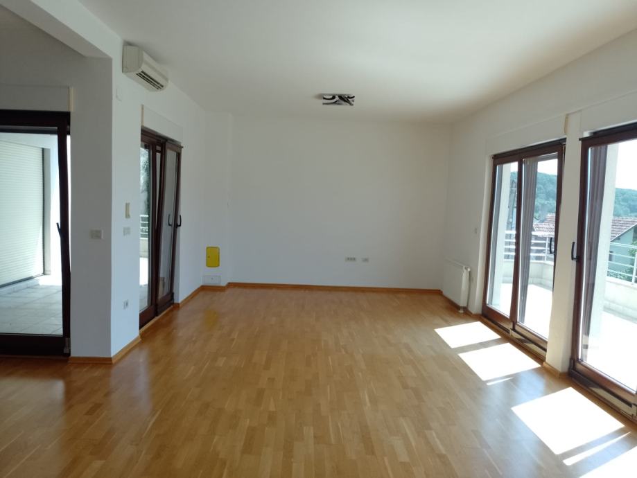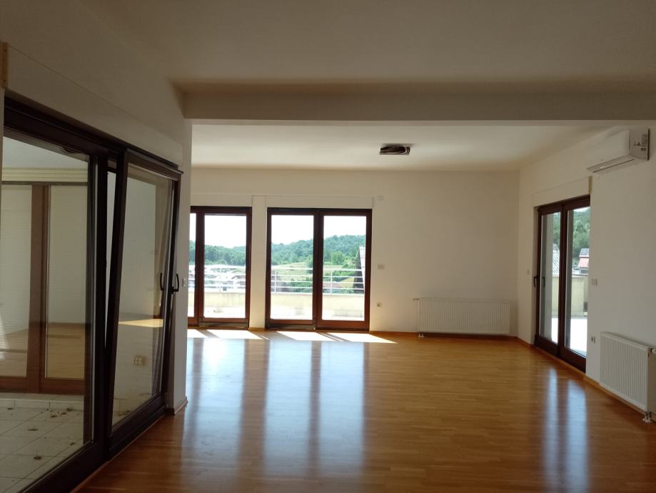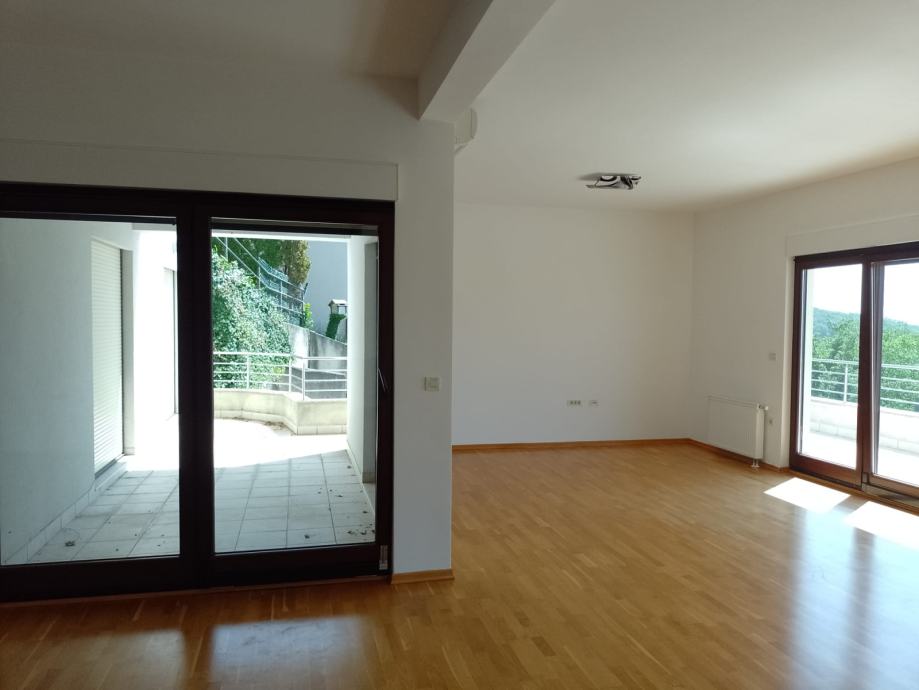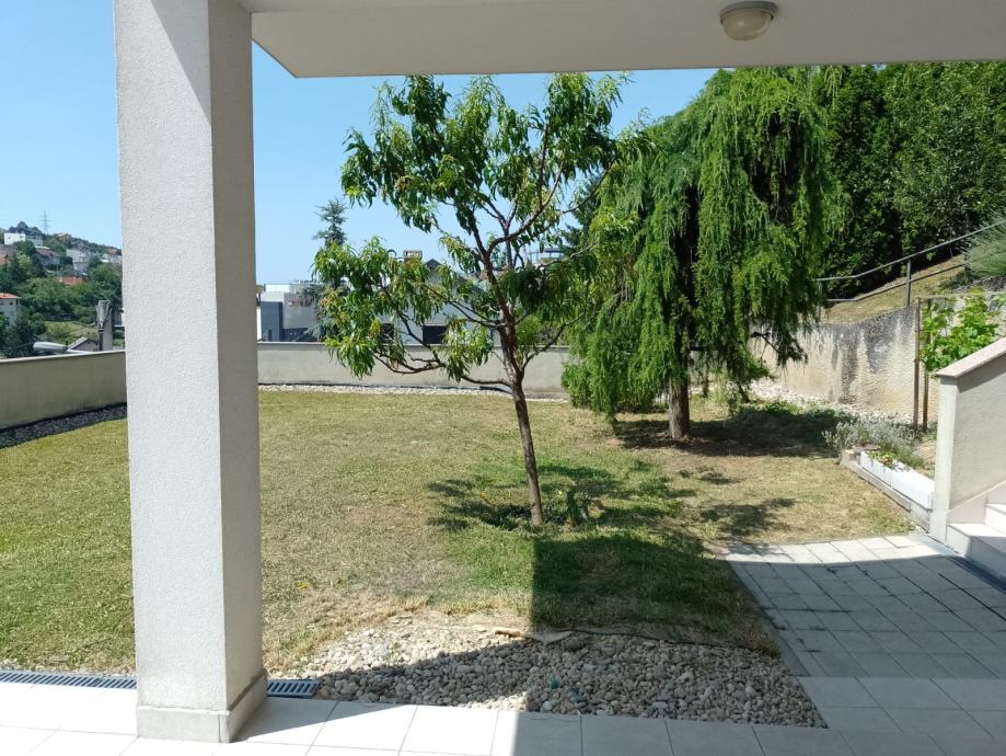 Moderan, nenamješten stan s 4 spavaće sobe, garderobom, 3 kupaonice s WC-om, 1 WC-om za goste, dnevnim boravkom, kuhinjom i blagovaonicom, izlaskom u vrt s balkonom te atrijem, pozicioniran SJ, za ljubitelje prirode te pogodno za ljude s posebnim potrebama. U stan se ulazi direktno liftom. Blizina britanske, njemačke i francuske škole. 2 autobusa i