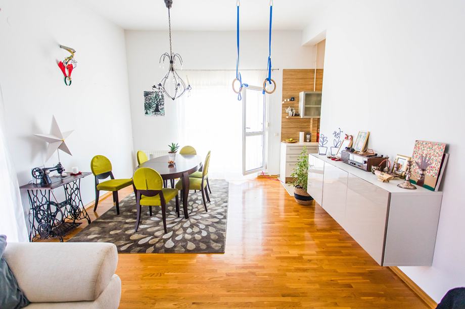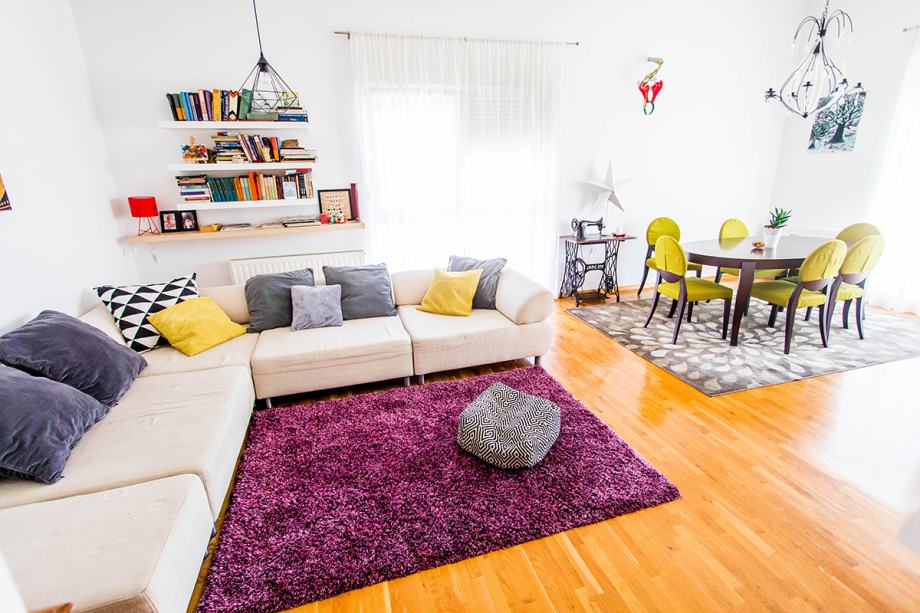 Stan se nalazi u slijepoj ulici okružen zelenilom i prirodom. Udaljenost autobusne stanice je 50 metara a do okretišta dubrava je potrebno 15 minuta autobusom. Škola, vrtić, konzum udaljeni 5 minuta autom.