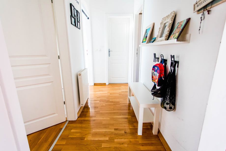Stan se sastoji od ulaznog hodnika, 3 spavaće sobe od kojih jedna ima vlastitu kupaonu, posebne kupaone, velikog otvorenog dnevnog boravka sa blagavaonom ( visina na pojedinim djelovima 3,40m) iz kojeg se u produžetku ide u kuhinju te dvije ostave. Iz dnevnog boravka se izlazi na veliku južno orijentiranu terasu od 42m2 s