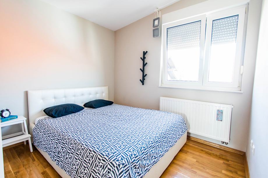 Orijentacija dvije spavaće sobe je zapad, glavne spavaće sobe istok a terasa je svojim glavnim djelom orjentirana na jug. U stanu je etazno plinsko grijanje, sva brojila su odvojena, pvc stolarija, svijetli hrast parket, protuprovalna vrata, ugradbeni ormari.