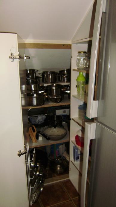 U suhom podrumu se uz trokrilni ormar za pohranu sezonske robe stane škrinja za zamrzavanje, inox bačva za vino, te prostor za pospremanje alata i vrtnog namještaja. Osim tog ormara u podrumu u stanu je ukupno jedanaest metara ugrađenih ormara izvedenih uglavnom u ptičjem javoru. Stolarija je uglavnom PVC. U stan se ulazi kroz dvostruka protu-provalna vrata. Najbliža autobusna stanica je udaljena oko 80 metara, a tramvajska stanica je udaljena oko 800 metara (10-15 minuta pješice). U neposrednoj blizini su vrtić, osnovna i srednja škola, bolnica, dom zdravlja, dva manja dućana, voćarna, pizzerija i frizerski salon, a nije daleko niti do SUPERNOVA shopping centra u kojem su brojni dućani