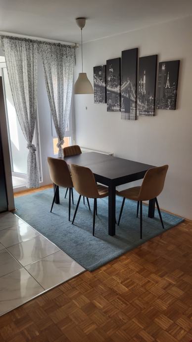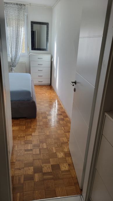 Iznajmljuje se moderno namješteni trosobni stan površine 61m2 na 4. katu stambene zgrade bez lifta. Stan je smješten u neposrednoj blizini ŠRC Mladost, studentskog doma Stjepan Radić, jezera Jarun, tramvajske stanice (5 i 17), osnovne škole i vrtića, a okrenut je na jugozapad prema parku.