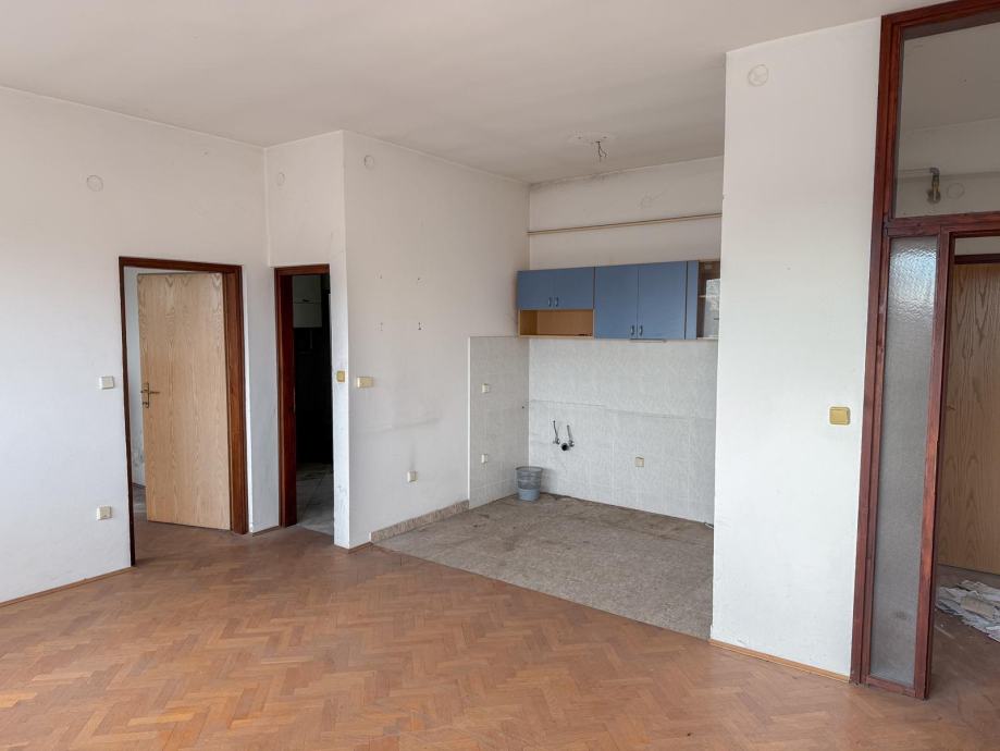 Stan ima funkcionalan raspored i veliki potencijal nakon renovacije. Potrebno je urediti priključke za vodu, struju i plin — instalacije postoje u zgradi, ali ih je potrebno provesti i priključiti u sam stan.
