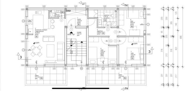 Remax za vas posreduje pri prodaji stana, novogradnja, u naselju Vrapče. Stan se nalazi na drugom katu zgrade od ukupno tri stana. Zgrada je sagrađena 2023. godine. Oprema zgrade/stanova izvedena je po visokim standardima u graditeljstvu, temelji su armirano betonski, a fasada se obložena termo izolacijskim slojem (stiropor i kamena vuna- protupožarna). Ulazna vrata stana također protuprovalna i protupožarna. Podovi se obloženi keramikom ili parketom ovisno o namjeni prostorije. Stan je moderno i funkcionalno projektiran u “Open space” tlocrtnom obliku rasporeda prostorija koji omogućava obilje prirodnog svjetla u interijeru. Četverosobni stan 76,08 m2 ukupne obračunske površine na drugom katu sastoji se od tri spavaće sobe, kuhinje s blagovaonom i dnevnom sobom, kupaonica s WC-om, zasebnim WC-om, dva balkona i parkirnim mjestom.