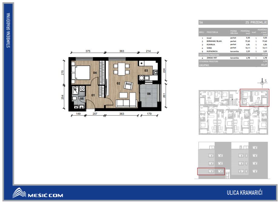 Uz stan je obvezna kupnja vanjskog parkirnog mjesta ili garažnog parkirnog mjesta.