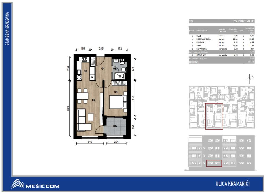 Uz stan je obvezna kupnja vanjskog parkirnog mjesta ili garažnog parkirnog mjesta.