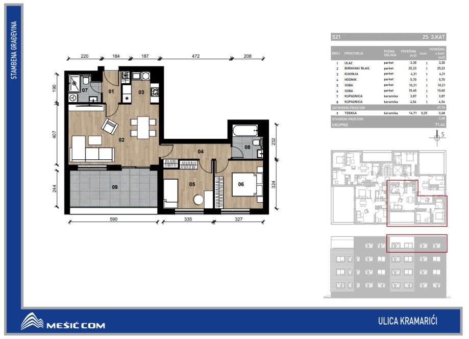 Uz stan je obvezna kupnja vanjskog parkirnog mjesta ili garažnog parkirnog mjesta.