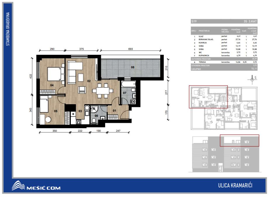 Uz stan je obvezna kupnja vanjskog parkirnog mjesta ili garažnog parkirnog mjesta.