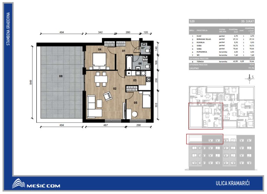 Uz stan je obvezna kupnja vanjskog parkirnog mjesta ili garažnog parkirnog mjesta.