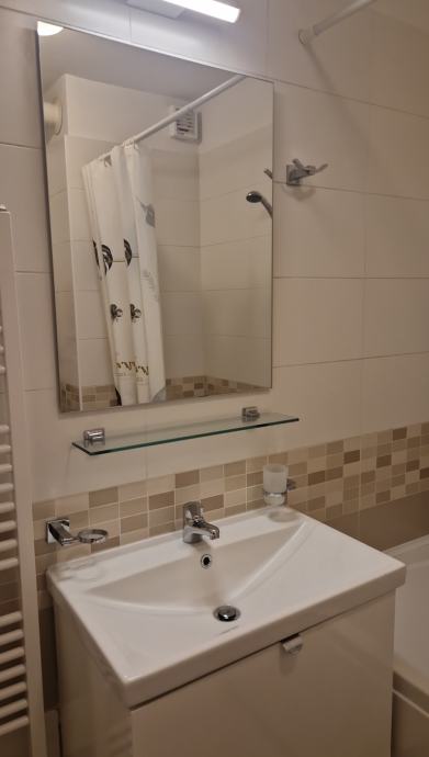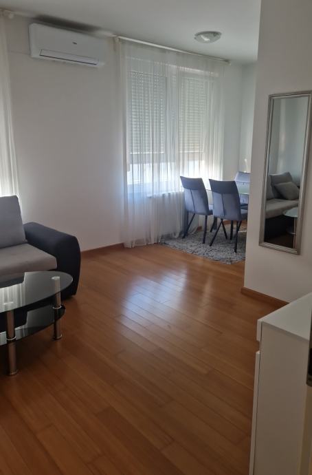 Iznajmljuje se u potpunosti namiješten stan na drugom katu stambene zgrade s liftom. Stan je svijetlo, održavan i uredan. Ima novi klima uređaj, protuprovalna vrata i video portafon. Cijena najma je 420 EUR + režije i polog u visini jedne najamnine. Nisu dozvoljeni kućni ljubimci. U blizini se nalazi trgovina, pekara, škola, vrtić, sportska dvorana, bazen, ljekarna, stomatolog i dr.. Dobra je povezanost autobusom Zet i vlakom.