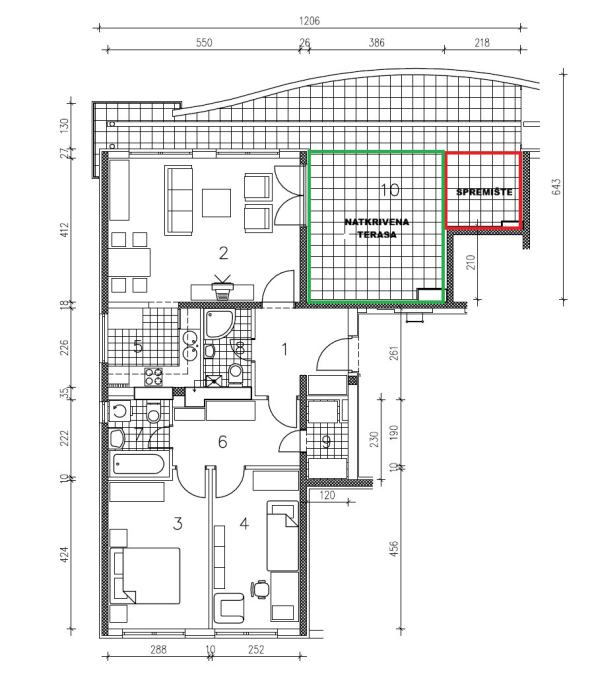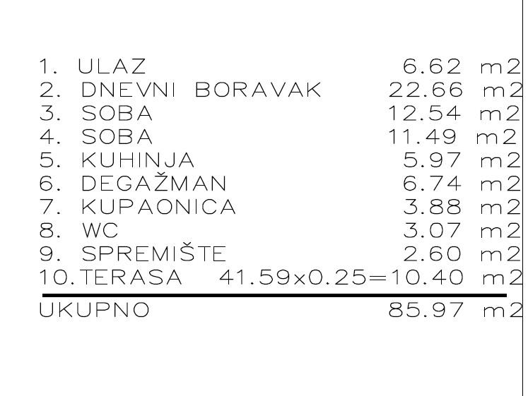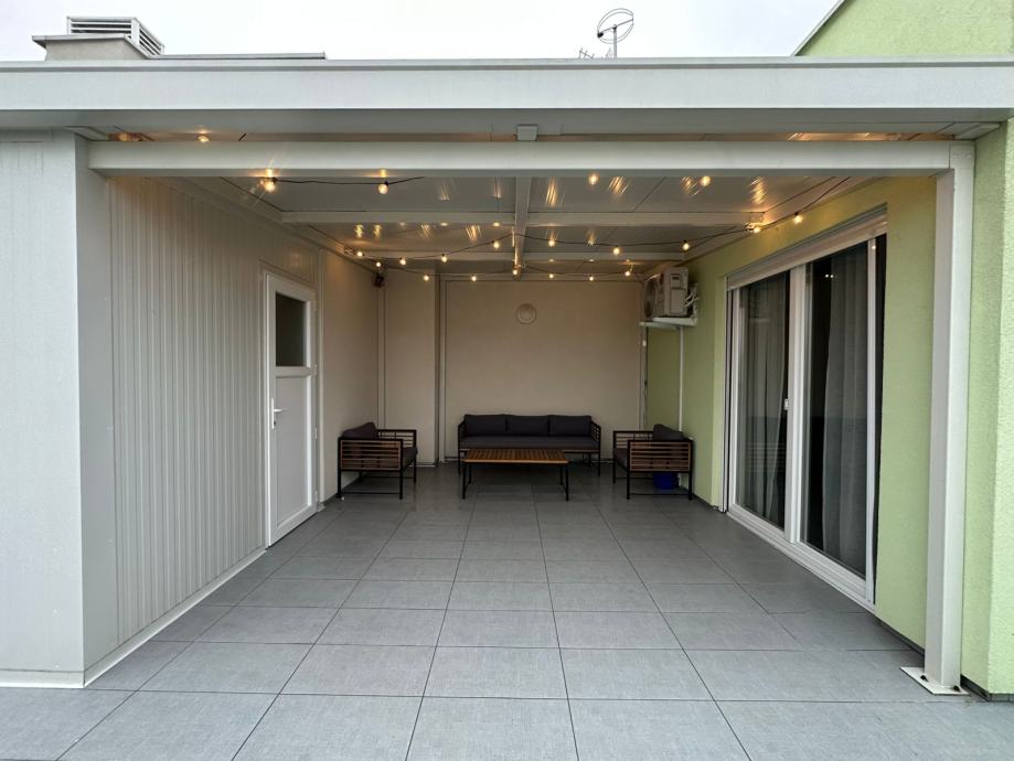 - Terasa: 41,50 m² (uređena + jedan dio zatvoren kao spremište)