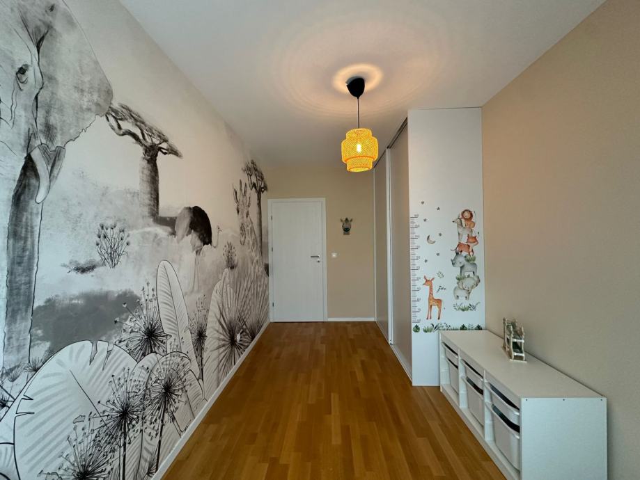 Stan se sastoji od ulaza i hodnika, dvije spavaće sobe, dnevnog boravka s blagovaonicom, kuhinje, degažmana, dvije kupaonice, spremišta u stanu i velike uređene terase 41,5 m² (djelomično natkriveno i zatvoreno spremište)