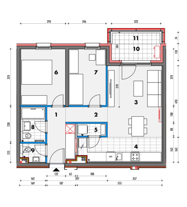 U ponudi su dvosobni, trosobni i četverosobni stanovi, pažljivo osmišljenog tlocrta. Svaki stan ima i otvoreni prostor (loggiu, balkon ili terasu) te pripadajuće spremište i parkirno mjesto u podrumskoj garaži.