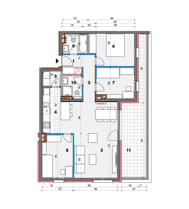 U ponudi su dvosobni, trosobni i četverosobni stanovi, pažljivo osmišljenog tlocrta. Svaki stan ima i otvoreni prostor (loggiu, balkon ili terasu) te pripadajuće spremište i parkirno mjesto u podrumskoj garaži.