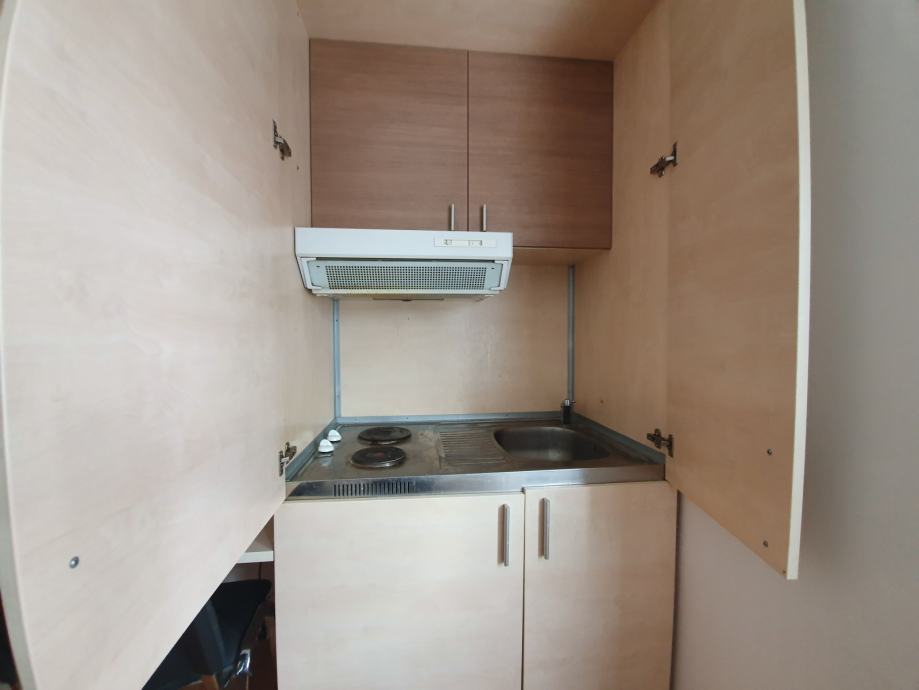 Garsonijera manja Jarun, 19,3 m2, 410 € sa uključenim svim režijama za boravak jedne osobe, centralno grijanje, mini kuhinja, sve novo perilica i sušilica rublja - klima ne postoji