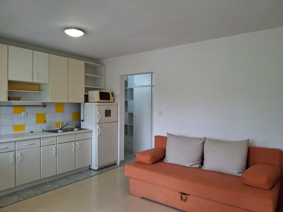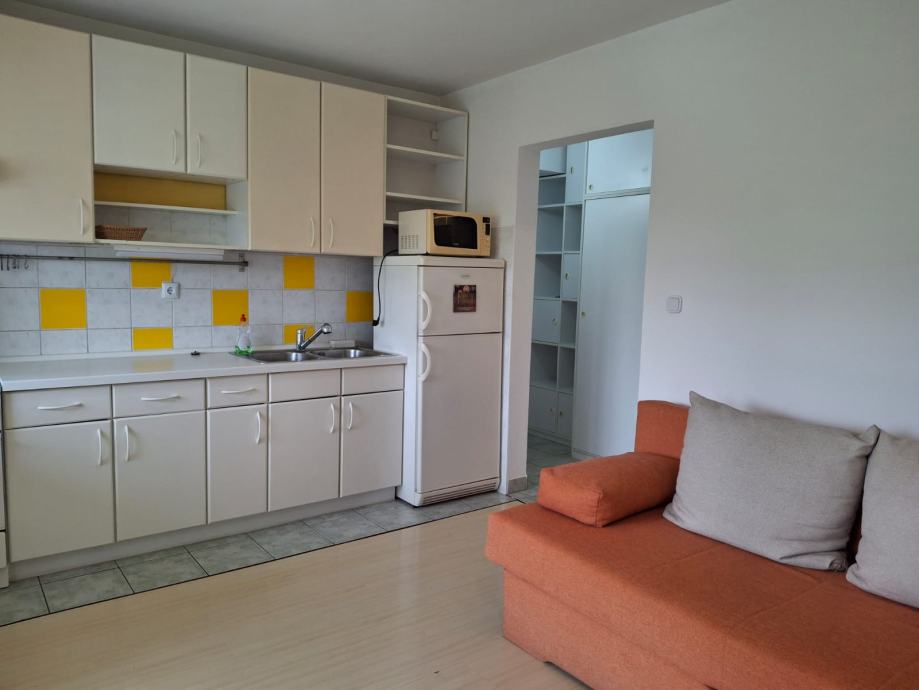 Stan ima puno dnevnog svjetla, a ispred zgrade i zelenila. Sastoji se od dnevnog boravka s kuhinjom i ležajem na razvlačenje, kupaonice s kadom i toaletom, hodnika s ugradbenim ormarima i lođe koja ima mogućnost zatvaranja roletama.