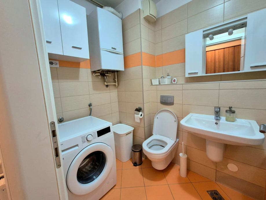 Opremljen je za udobno stanovanje sa svim potrebnom te novim kućanskim aparatima , LCD TV-om , klimom s grijanjem i hlađenjem , plinskim etažnim centralnim grijanjem i dodatnim spremištem pored stana te velikom zatvorenom lođom. Energetski je izuzetno štedljiv.