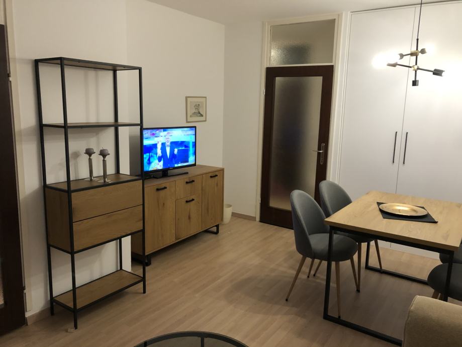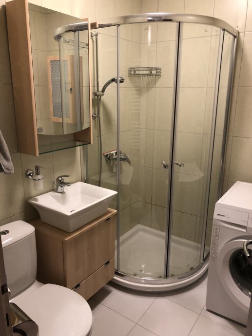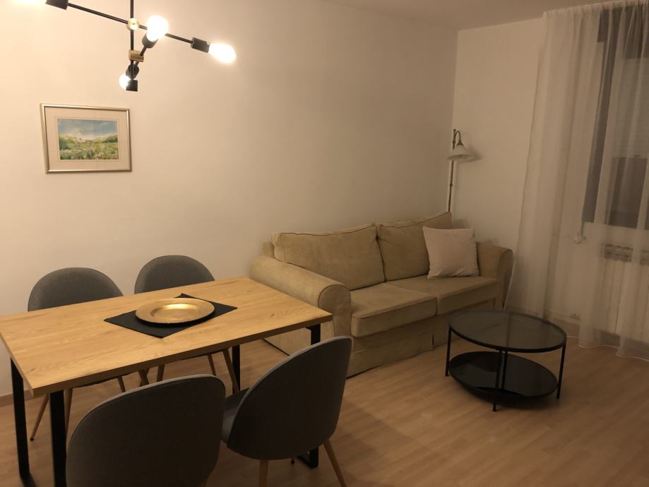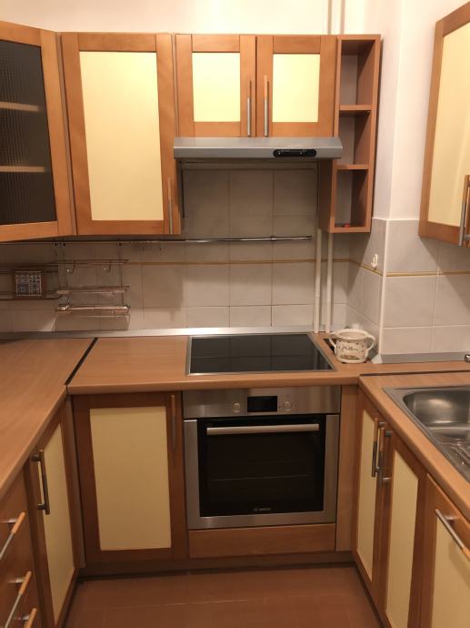 Namješten dvosoban stan (41 m2) na prvom katu. Sastoji se od hodnika, ostave, balkona, kuhinje, dnevnog boravka s blagovaonicom, kupaonice, spavaće sobe.