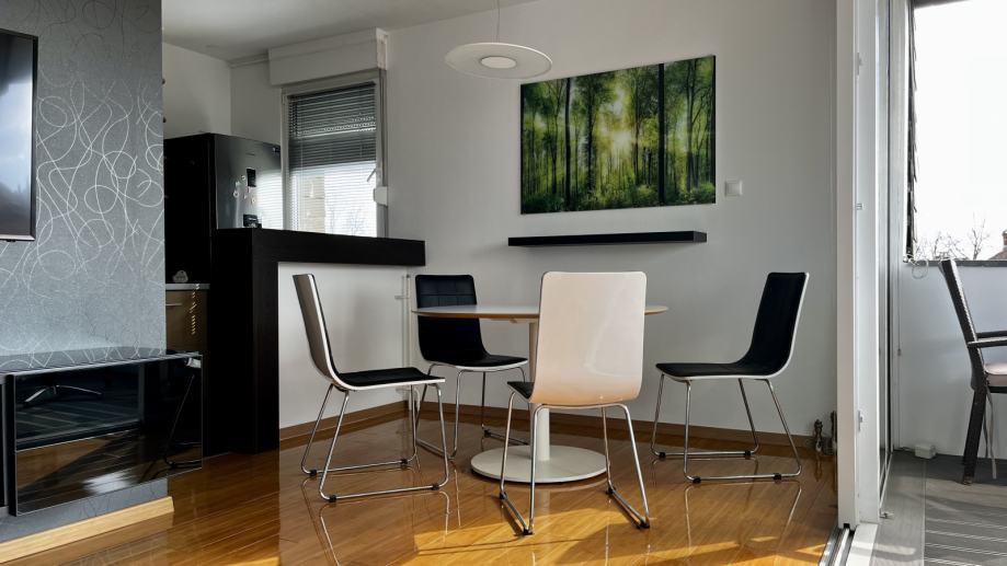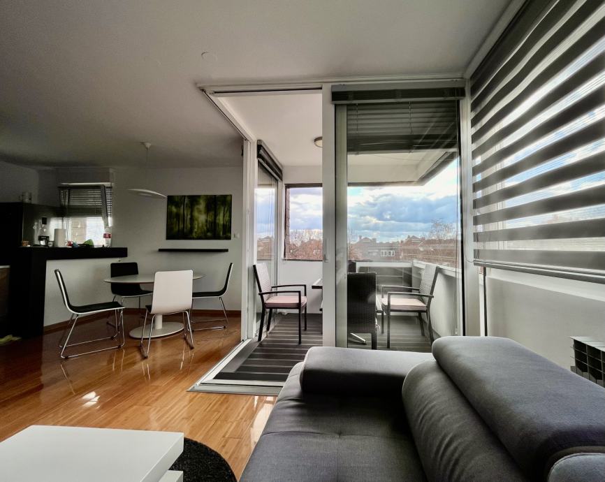 Iznajmljuje se stan na Jarunu/ Staglišću na 4 katu stambene zgrade u ulici Hrgovići 69, stan je potpuno namješten sa svim bitnim i dodatnim kućanskim aparatima ( perilica suđa, štednjak, pećnica, napa, mikrovalna pećnica, hladnjak i električni roštilj, perilica rublja, smart tv 48”, klima uređaj).