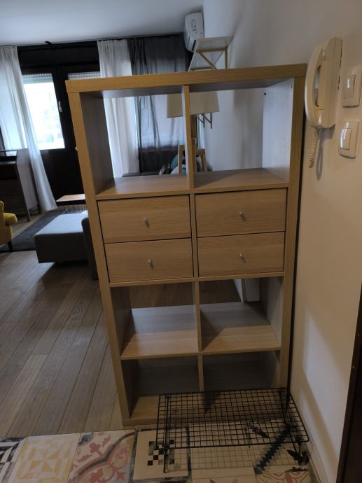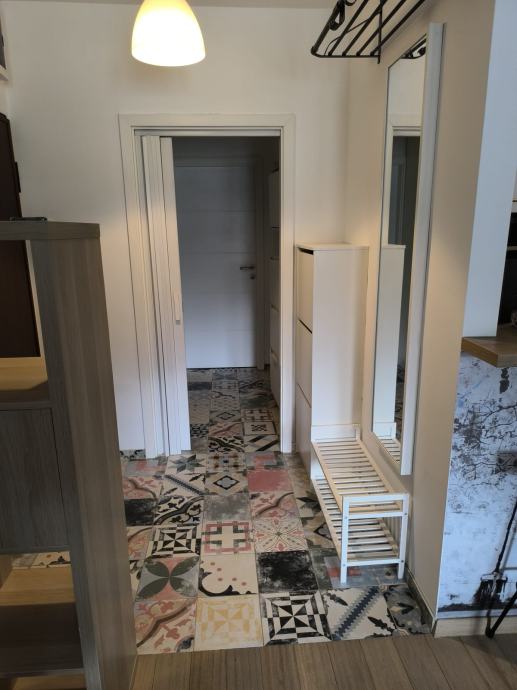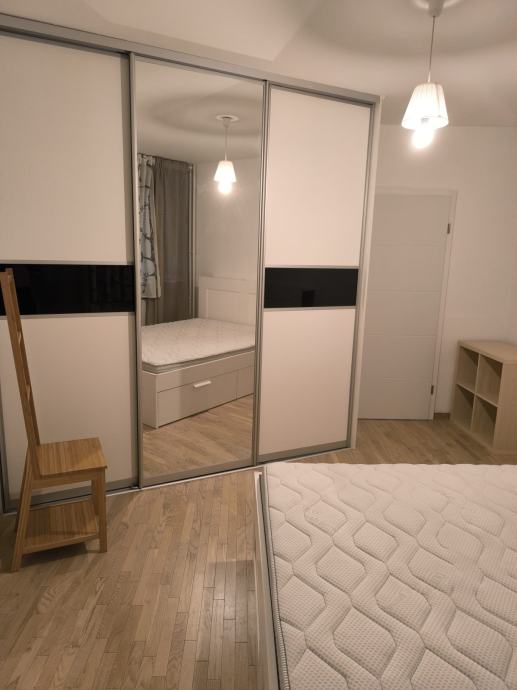 Kuhinja je napravljena po mjeri s aparatima koji ostaju u stanu (pećnica, napa, ploča, perilica za suđe). Ugradbeni ormari po mjeri u većoj u spavaćoj sobi i hodniku.
