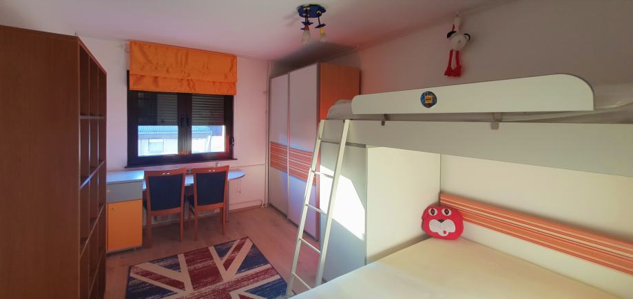 Ovaj 3-sob. stan nalazi se na četvrtom katu (od četri) kvalitetne zgrade građene 1985. godine, dvostrane je orijentacije (jugoistok-sjeverozapad) i ima površinu od 78 m2. + 2m2 spremište u podrumu.