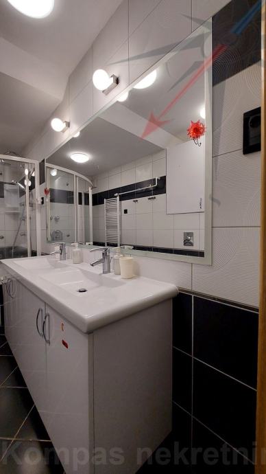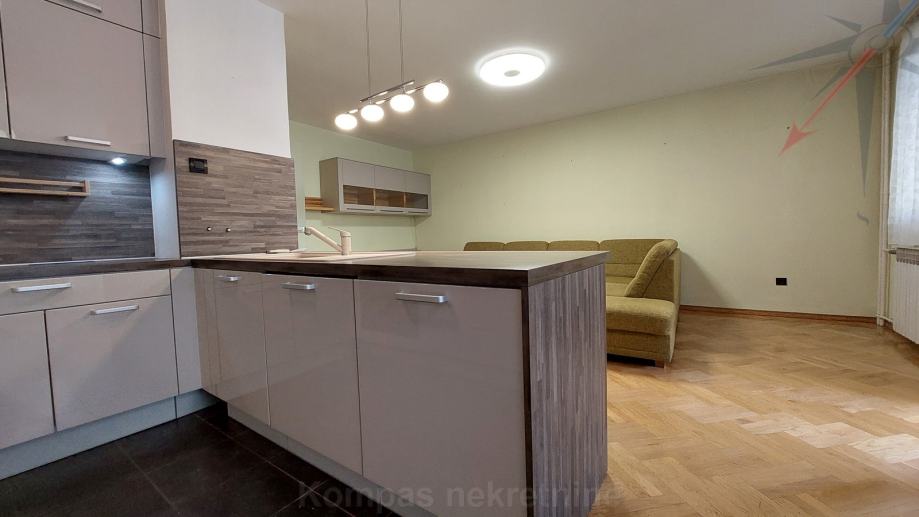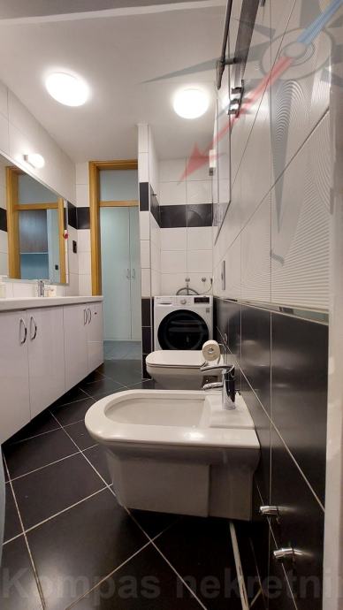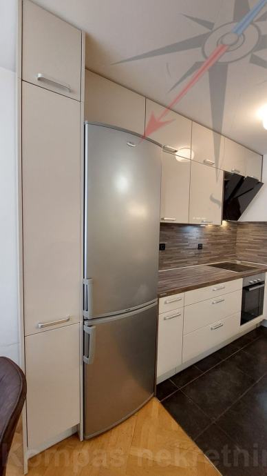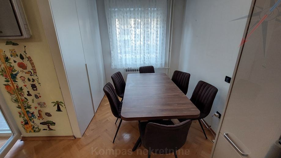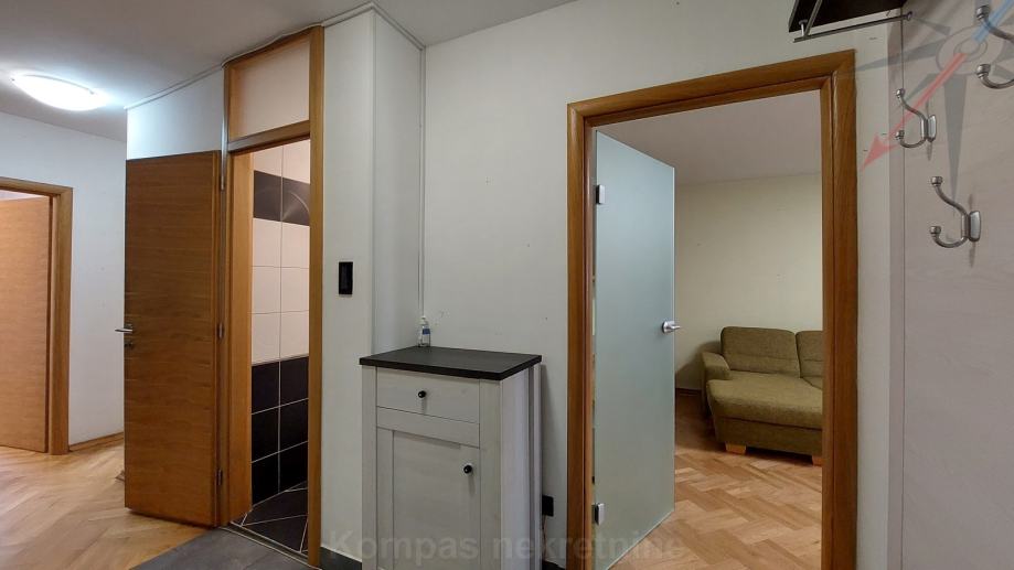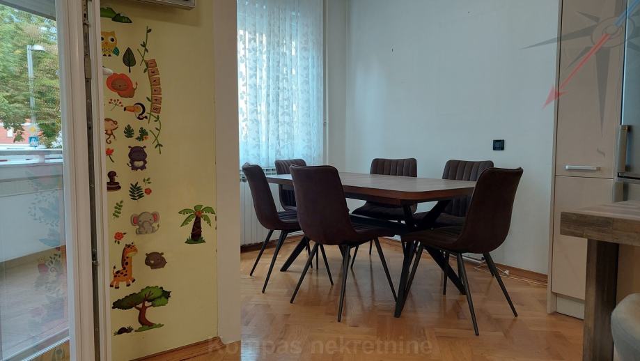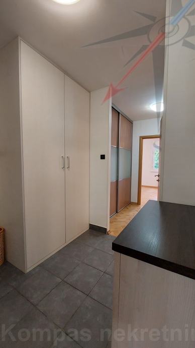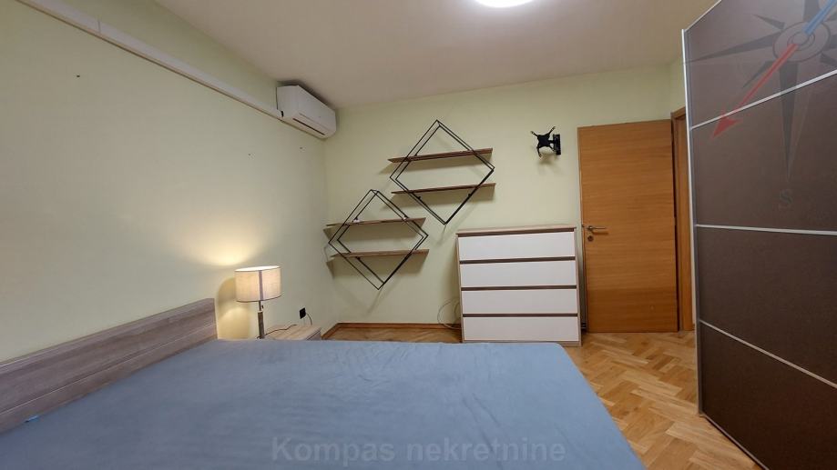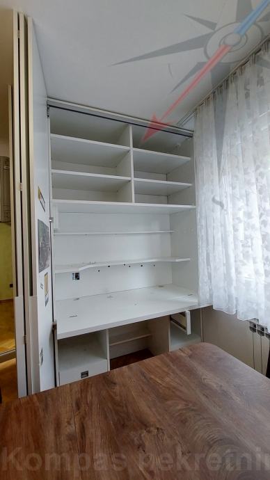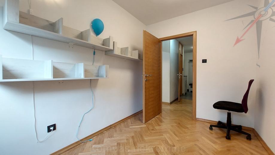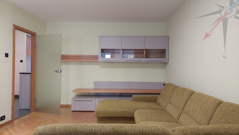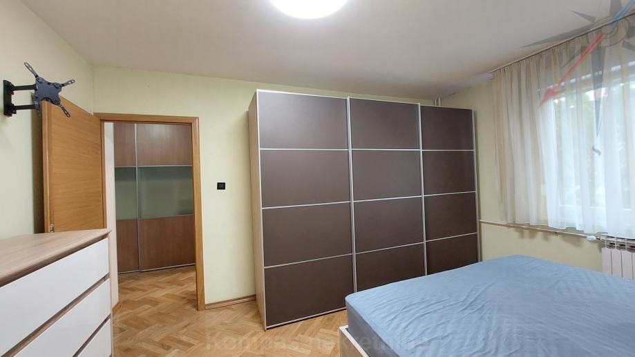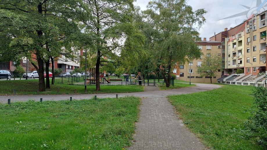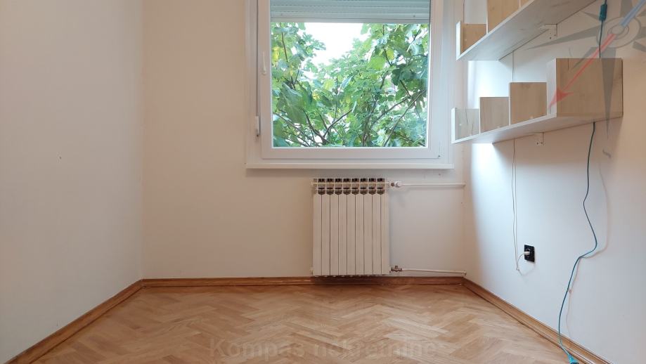 Furnished three-room apartment (75 m2) on the high ground floor of a residential building, B. Vukasa Street. It consists of a kitchen, living room, two bedrooms, bathroom, loggia. An unfurnished room can be furnished in agreement with the tenant. Has an intercom, security door, optical internet, air conditioning, heating via the city heating plant. Heating can be regulated using a distributor. The building reserve for the apartment is 63 euros. Smoking in apartment is not allowed. The tenant can use a small storage room. Parking is possible in front of the building and is free of charge. Located near public transport, Jarun market and Jarun lake.