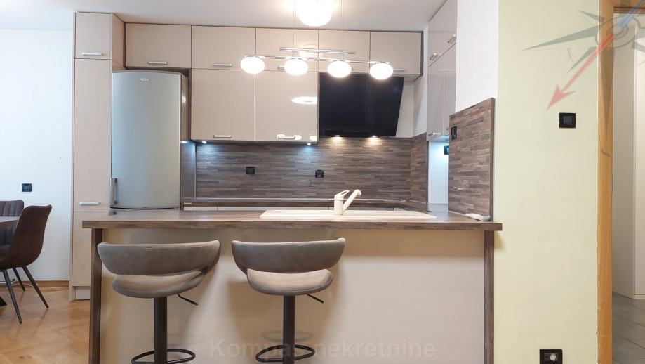 Namješten trosoban stan ( 80 m2 ) u visokom prizemlju stambene zgrade, Ulica B. Vukasa. Sastoji se od kuhinje, dnevnog boravka, dvije spavaće sobe, kupaonice, loggie. Nenamještena soba se može opremiti u dogovoru s najmoprimcem. Ima portafon, protuprovalna vrata, mogućnost optičkog interneta, klima uređaj, grijanje na toplanu. Grijanje se može regulirati pomoću razdjelnika. Pričuva za stan je 63 eura. Pušenje u stanu nije dozvoljeno. Najmoprimac može koristiti malo spremište. Parkiranje je moguće ispred zgrade i ne naplaćuje se. Nalazi se u blizini javnog prijevoza, tržnice Jarun i jezera Jarun.