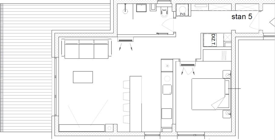 - Svi pregradni zidovi su od gipskartonskih ploča.